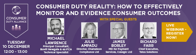In this live webinar on Tuesday 10 December, members of the Association of Professional Compliance Consultants will discuss the practical steps firms can take to ensure they have the right framework in place to monitor outcomes effectively, and highlight lessons from recent FCA supervision findings.